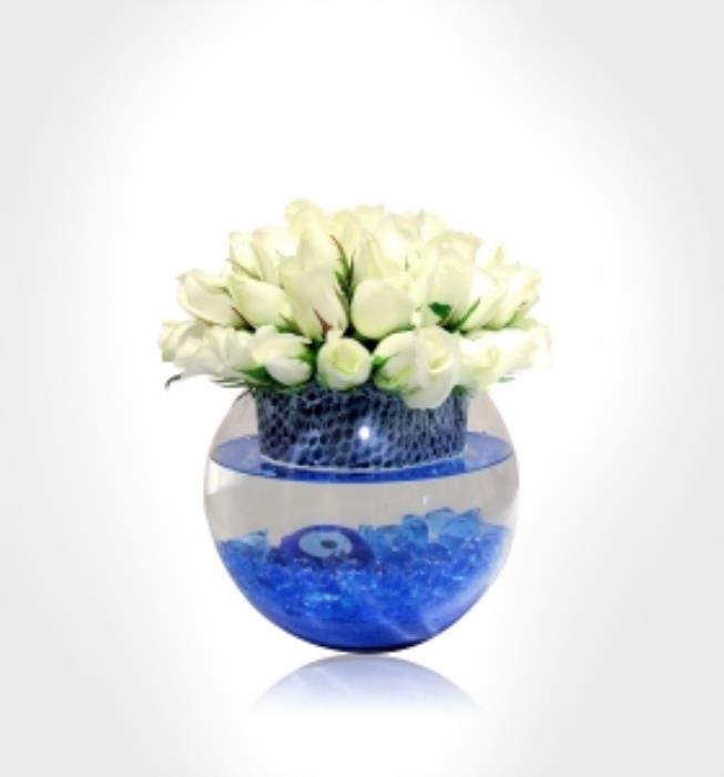 Cam Akvaryumda Beyaz güller