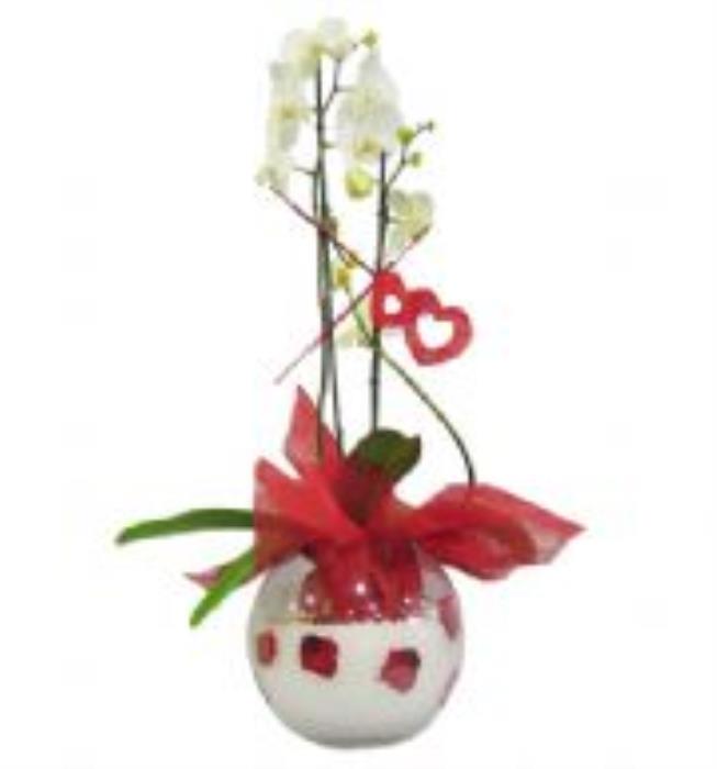Cam Vazoda Çift Dallı Beyaz Renkli Özel Yetiştirlmiş Orkide