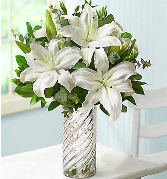 Camda Beyaz Lilyum Aranjmanı