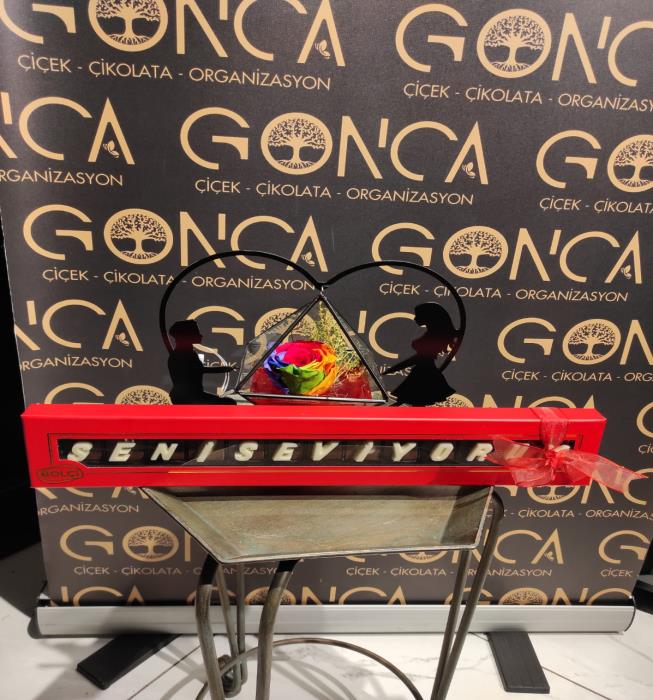 SOLMAYAN GÜL VE SENİ SEVİYORUM YAZILI ÇİKOLATA