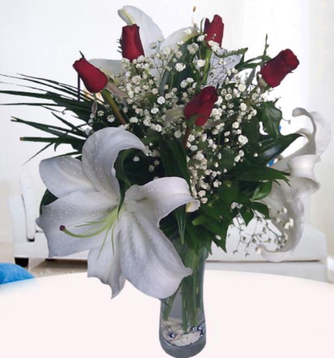 Vazoda 5 gül ve lilyum ile sevdiklerinizi sevindirmek istermisiniz ?